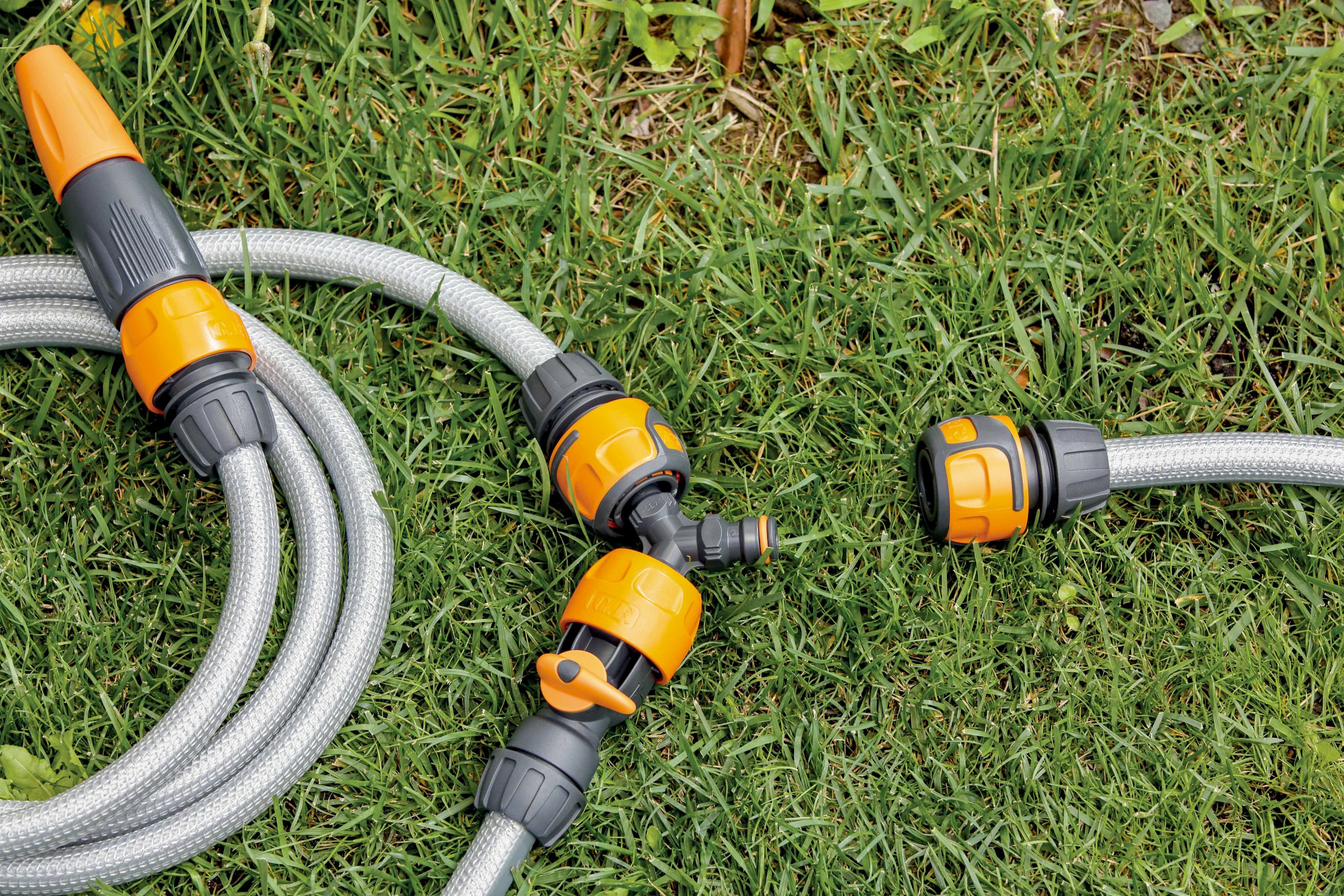 Otomatik hortum bağlantılarıyla donatılmış üç hortum hattını birleştirmek için.